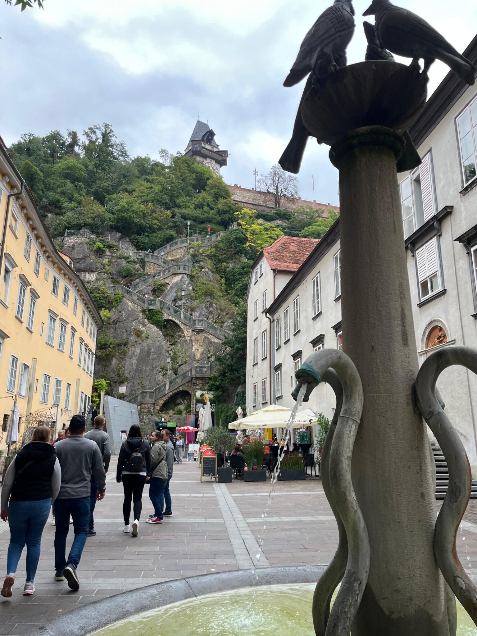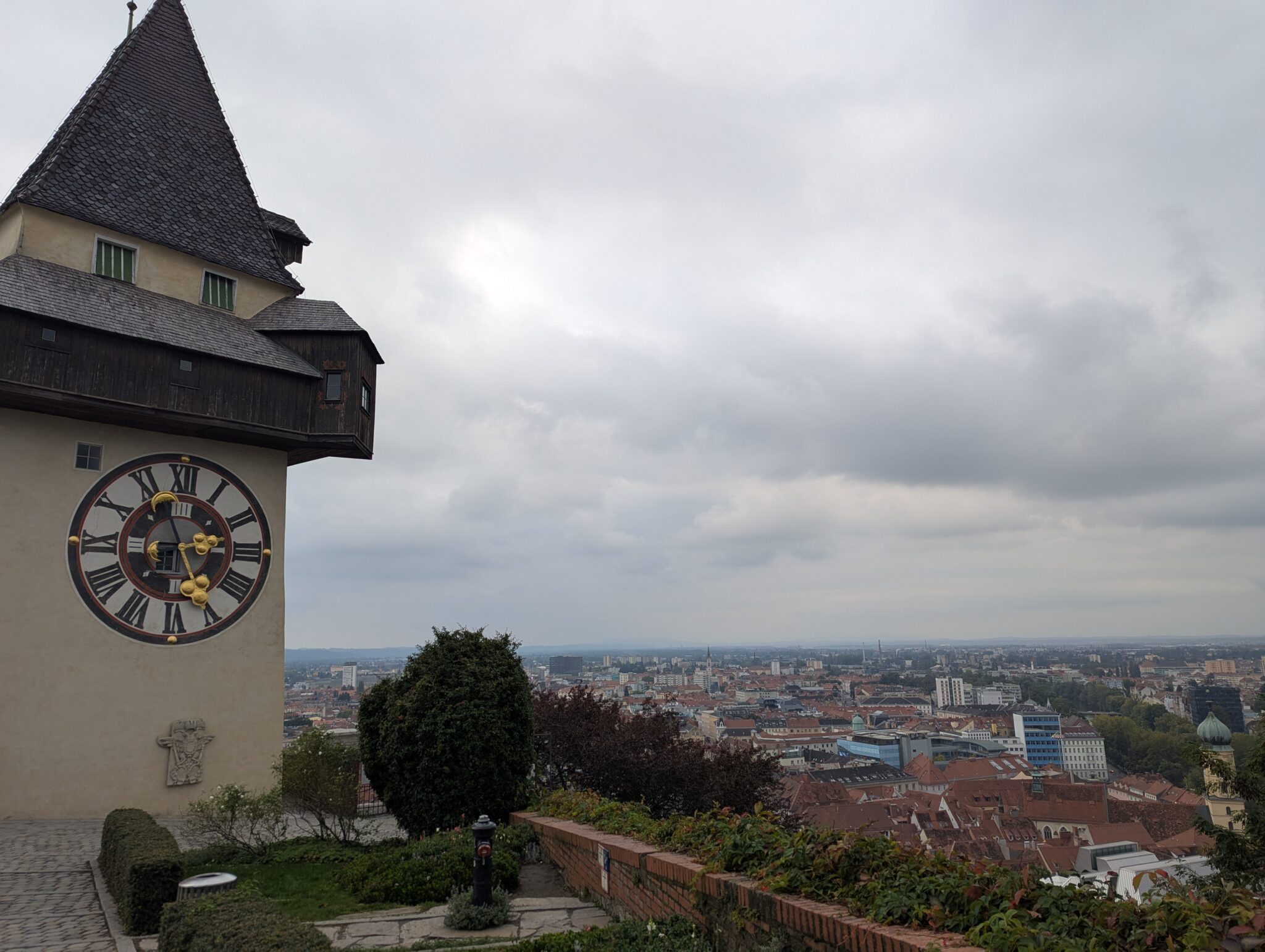 Am Samstag führte der erste Programmpunkt zum Erzberg in Eisenerz. Dort machten wir die Hauly-Abenteuerfahrt und besichtigten die Erlebniswelt Schaubergwerk. Anschließend ging es weiter nach Graz, wo nach dem Mittagessen eine Stadtführung auf dem Programm stand, die am Schlossberg beim Uhrturm ihren Höhepunkt fand. Den Abend verbrachten wir bei einem gemeinsamen Essen und nutzten danach die Gelegenheit, auch das Grazer Nachtleben zu entdecken.